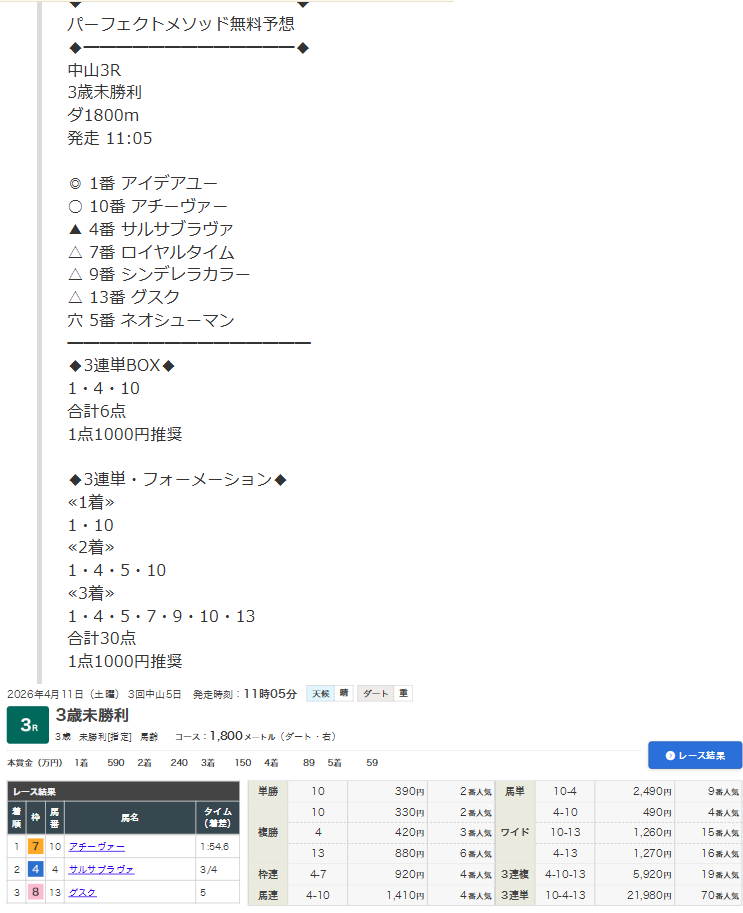 昼休み中に馬券買って、17時に仕事終わって的中してるか確認したらビックリ!! 会社にいるギャン中の同僚から進められて使ってみたけど同僚が紹介するだけの予想っぷりでした、普段ギャンブルは一切しないけどこんな一回で稼げるならのめり込んじゃいそうです。