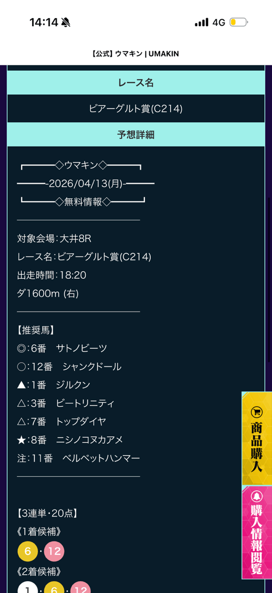 うっひょー! 先週の平日紹介されて初利用だったけど万馬券大当たり! しかも有料情報じゃなくて無料情報!!!! 推奨通り1点千円で馬券買ってたから21万9800円払戻し! 桜花賞も獲れたしこの流れはここ使えば皐月も獲れるっしょ!