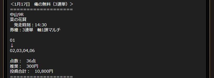 ライン友だち追加者限定に向けて公開される無料予想で3連単万馬券的中で49,710円的中。