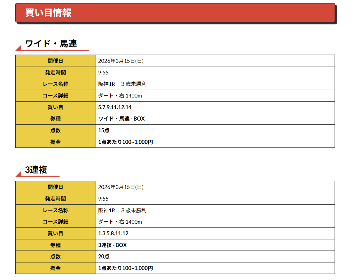 15日(日)の無料情報でめっちゃ勝てました! 朝一のレースから7万9900円とかありがたいね、金鯱賞も獲れたし大満足です!